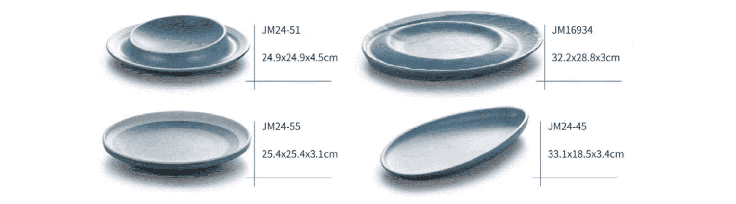 Bộ tô chén bát đĩa thìa muỗng ly cốc xanh xám viền trắng xám nhựa melamine, mầu sắc tươi sáng Độc - Lạ - Đẹp.